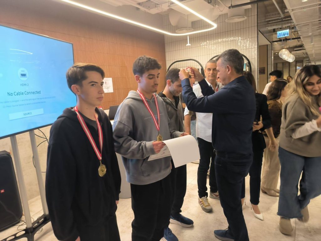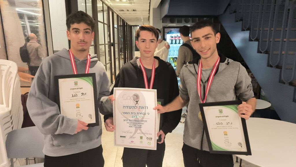 לדן בסיס, גיא בר גיל ויובל וולף תלמידי י"א שזכו במקום השלישי![]()